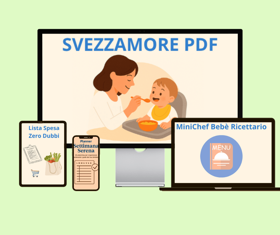 SvezzAmore è una guida pratica in formato PDF, chiara e rassicurante pensata per aiutarti a iniziare lo svezzamento del tuo bambino in modo semplice, anche se è la tua prima esperienza.